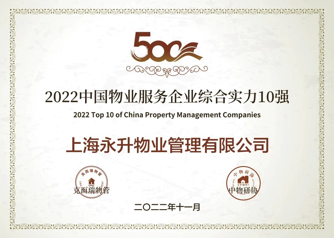 LETOU·(中国区)有限公司官网永升效劳荣获中国物业效劳综合实力TOP10