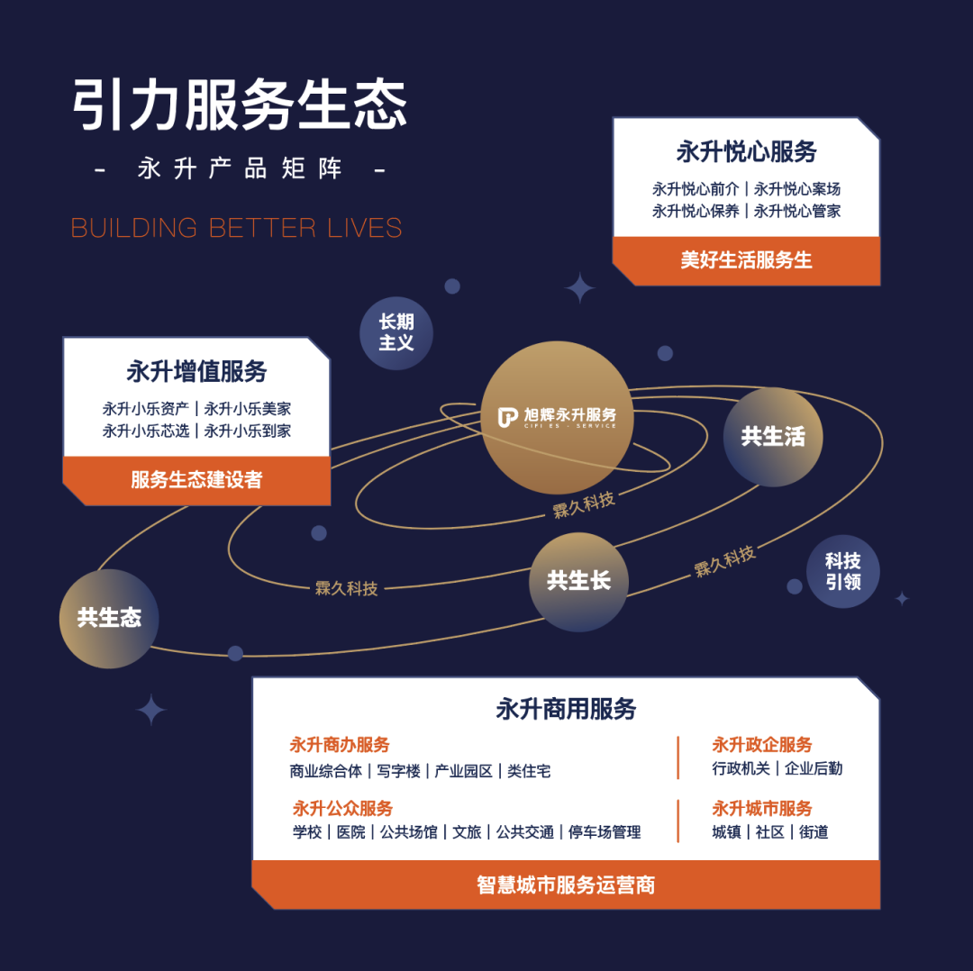 建设20年来,,,,,LETOU·(中国区)有限公司官网永升效劳始终追求为客户提供更优美的生涯,,,,,在“平台+生态”生长战略的引领下,,,,,坚持“恒久主义”和“科技引领”,,,,,基于业主需求和市场的转变,,,,,LETOU·(中国区)有限公司官网永升效劳前瞻性地升级和完善效劳产品,,,,,在生长之路铸造出系统化效劳产品矩阵:“引力生态效劳系统”,,,,,基于社区效劳、商用效劳、增值效劳、智慧效劳等四大类效劳,,,,,专业深耕住宅、商业、园区、办公楼、学校、医院、展馆、文旅、交通枢纽、都会效劳等十大业态,,,,,实现都会全空间、空间全周期的综合效劳。。。。。
