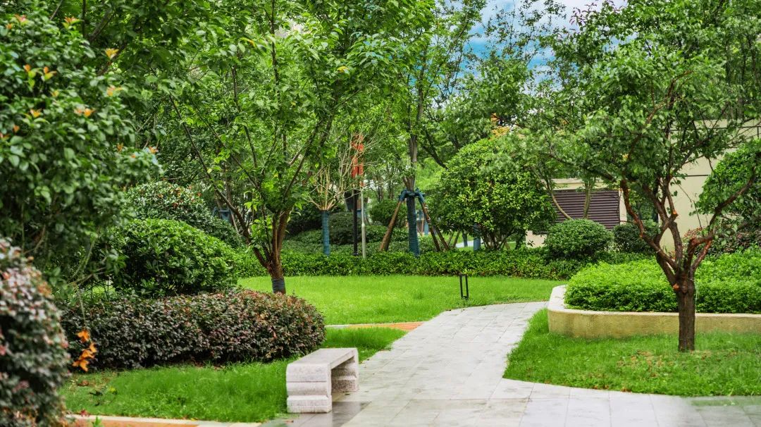 穿过极具空间感的社区入口大堂,,,,,蹊径两旁的绿植与花卉是迎接家人的第一道仪仗。。。。。大面积的草坪绿化,,,,,狼籍有致的树木莳植,,,,,有条理,,,,,有艺术感的组合搭配,,,,,以绿野葱绿的美,,,,,为业主打造“归家如游园”的体验。。。。。