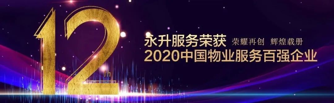 2020年5月,,,,,,,,永升效劳荣耀再创,,,,,,,,荣获“2020中国物业效劳百强企业”TOP12、"2020中国物业效劳百强生长性领先企业”、“2020人力资源治理优异奖”等多项声誉,,,,,,,,企业实力、品牌影响力备受行业认可。。。。。。。